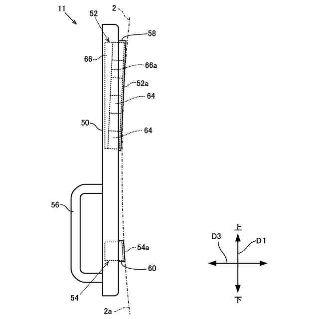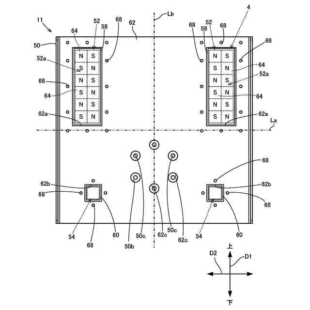 前記第2方向において、一方の前記磁石部および一方の前記支持部は、前記第1方向に延びる前記板状部材の第2中心線よりも一方側に設けられ、他方の前記磁石部および他方の前記支持部は、前記第2中心線よりも他方側に設けられ、
