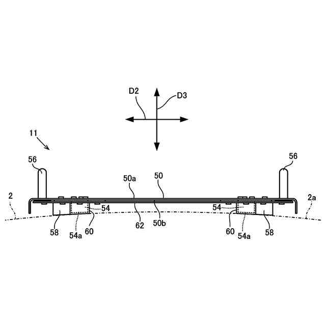 前記吸着面および前記支持面はそれぞれ、前記第1方向において前記第1中心線側ほど、前記厚み方向における前記板状部材との距離が近くなるように若しくは遠くなるように前記板状部材に対して傾斜している、または前記第2方向において前記第2中心線側ほど、前記厚み方向における前記板状部材との距離が近くなるように若しくは遠くなるように前記板状部材に対して傾斜している、ことを特徴とする。