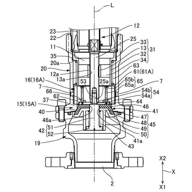 前記ボルト部材は、前記軸部の下端部分が前記弁体押さえ部材に固定され、