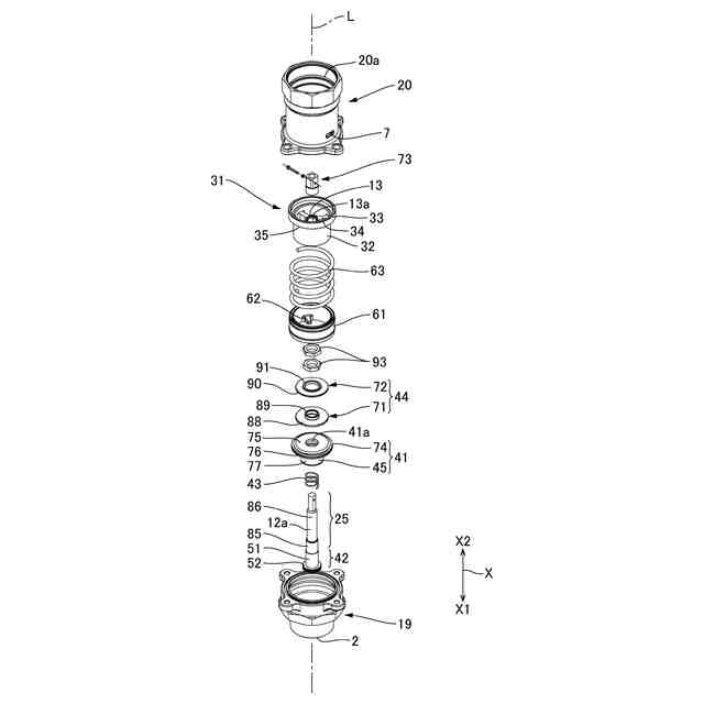 本発明において、前記可動弁体は、前記貫通孔に挿入されて当該貫通孔を封鎖する柱部と、前記柱部の下端から径方向外側に広がる鍔部と、を備え、前記バネ部材は、コイルバネであり、前記柱部の外周側に配置され、その下端が前記鍔部に接続され、その上側が前記弁本体に接続され、前記弁機構が前記流路閉鎖状態のときに前記弁本体を前記弁座に付勢する付勢力を発揮することを特徴とする。このようにすれば、弁機構が流路閉鎖状態に移行したときに、バネ部材の付勢力を利用して、主弁体を弁座に押し付けやすい。