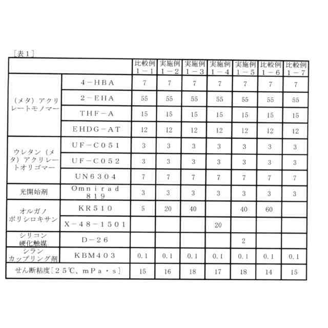 光硬化後の温度-20℃及び周波数1Hzのせん断モードで動的粘弾性測定法で測定された貯蔵弾性率が1MPa以下であり、