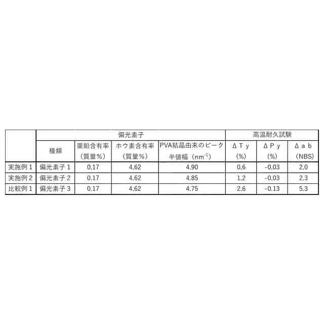このような高温耐久性の高い偏光素子の製造方法として、例えば、特許文献1~2では、亜鉛、銅、アルミニウム等を含む金属塩等の成分を処理浴に添加することで、偏光素子にこれら成分を含有させ、偏光素子の耐久性を向上させることが開示されている。また、特許文献3~4では、有機チタン化合物等の成分を処理浴に添加する、偏光素子の製造方法が開示されている。