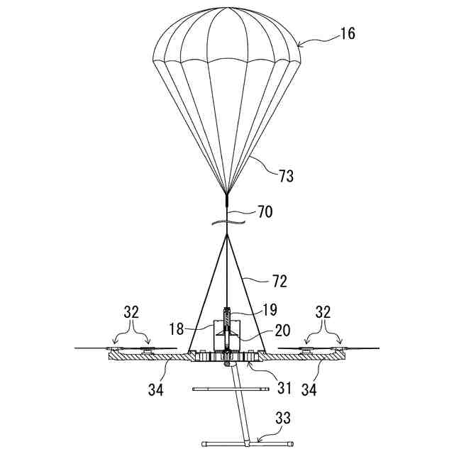 一方で、上記のような飛行体の落下事故のリスクが危険視されており、飛行体の普及の妨げとなっている。こうした落下事故のリスクを低減するために、安全装置として飛行体用パラシュート装置が製品化されつつある。