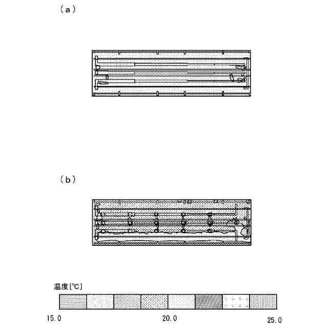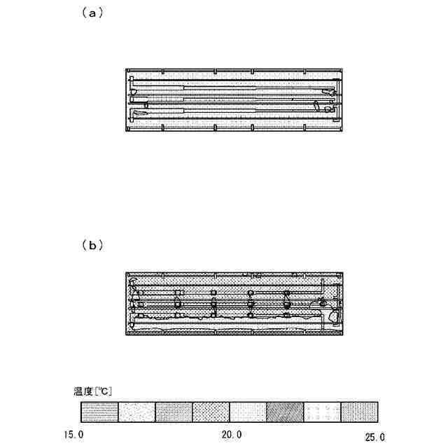 (a)は、本実施の形態における高さ10mのXY面内での温度分布を示すシミュレーション結果、(b)は、従来例の高さ10mのXY面内での温度分布を示すシミュレーション結果である。