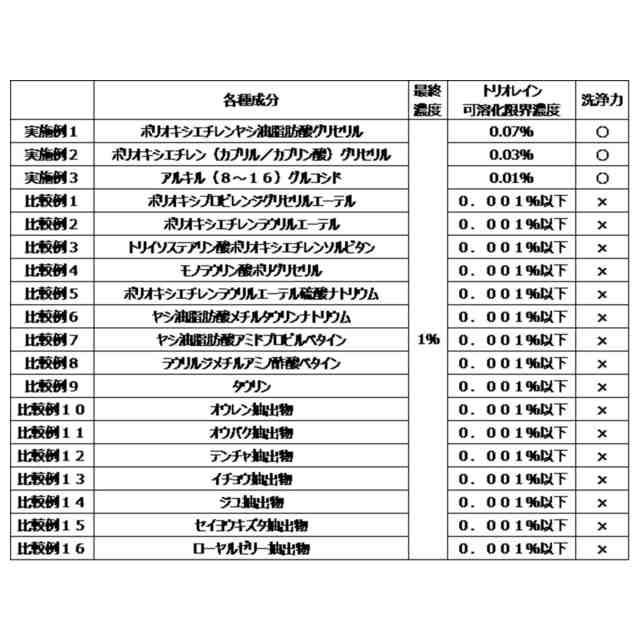 トリグリセリドに対する洗浄力を有するということを見出した。また、ポリオキシエチレ