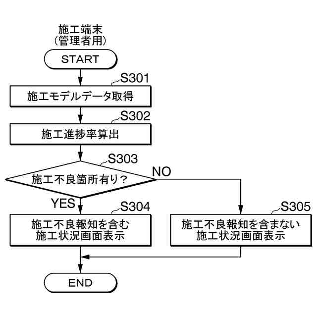 第1実施形態における施工端末が施工状況の情報の表示に関連して実行する処理手順例を示すフローチャートである。