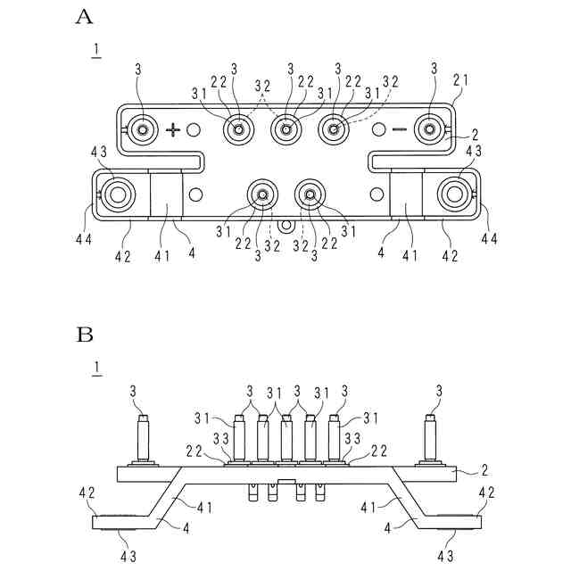 図1は、実施形態1に係るタップ切換台1の斜視図であり、図2は、実施形態1に係るタップ切換台1の正面図及び底面図である。図2Aは、タップ切換台1の正面図であり、図2Bは底面図である。説明の便宜上、実施形態1では、単相用のタップ切換台1を挙げて説明する。