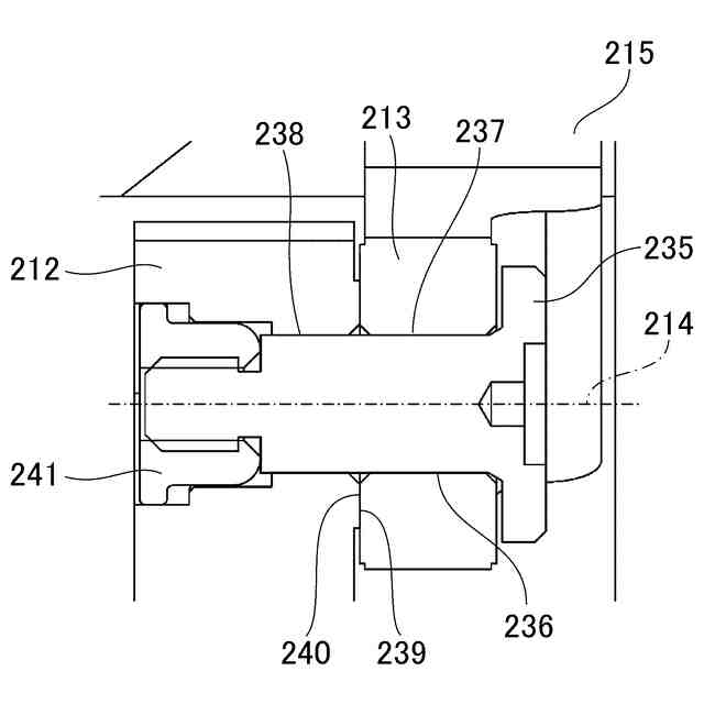 実施形態に係る操作部材の第2の回転軸部の断面図である。
