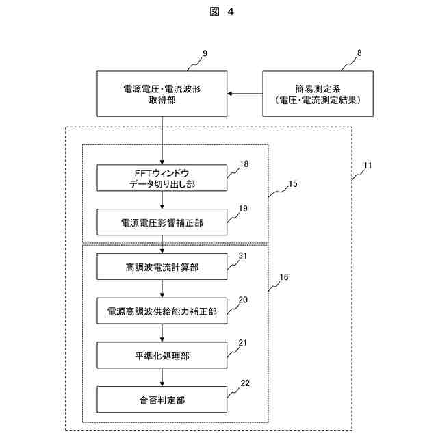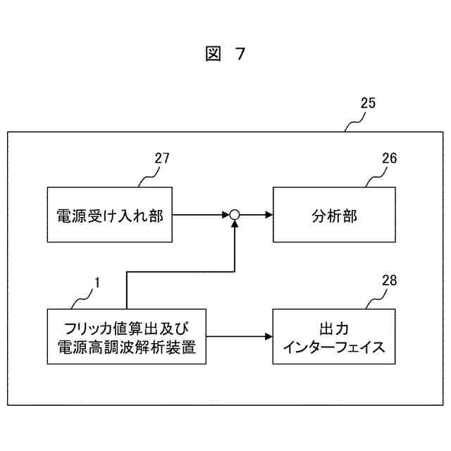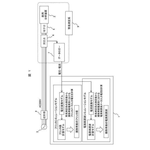 【解決手段】プロセッサは、測定電圧とその測定波形をメモリに格納し、メモリに格納された測定電圧とその測定波形から所定の時間軸範囲の電圧・電流波形を抽出し、抽出した電圧・電流波形から所定の規格に準拠した電源に接続した場合の電圧電流波形に変換する規格準拠電源高調波計算用電流変換を行い、変換した電流波形から電源高調波電流を解析し、抽出した電圧・電流波形から所定の規格に準拠した電源とリファレンスインピーダンスネットワークに接続した場合の電圧電流波形に変換する規格準拠フリッカ値計算用電圧変換を行い、変換した電圧波形からフリッカ値を算出し、電源高調波解析の結果と算出したフリッカ値の結果を出力インターフェイスに出力することを特徴とする。