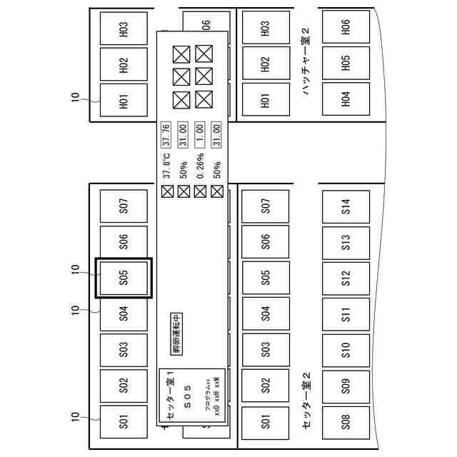 同実施形態の孵卵装置のレイアウト表示画面の画像である。