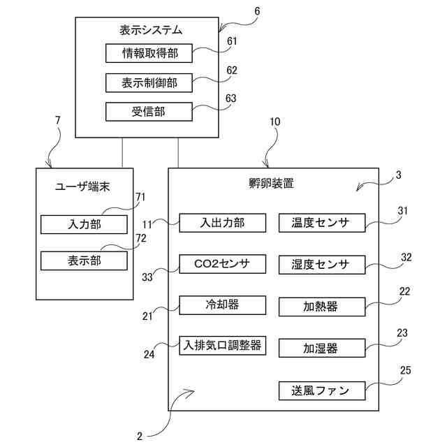 本発明は、孵化率に影響する孵卵装置内の環境に関わる情報をユーザにわかりやすく表示する表示システムを提供する。