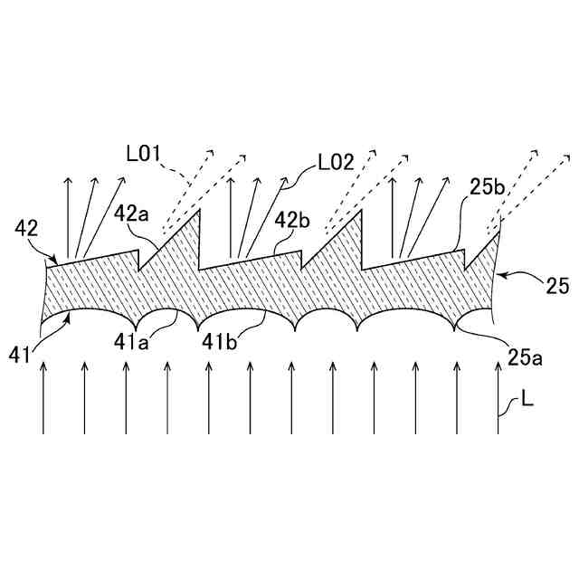 前記拡散制御部は、シリンドリカル凹レンズからなる前記第一レンズ及び前記第二レンズが交互に配列され、
