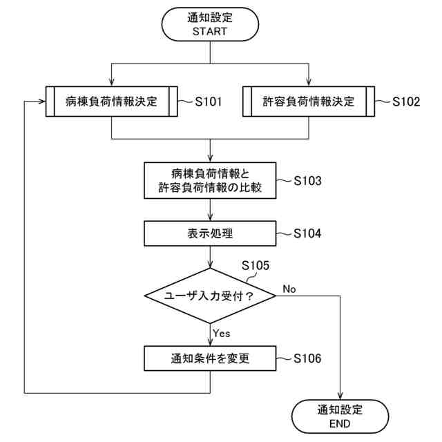 前記病棟負荷情報と前記許容負荷情報の比較処理に基づいて、前記通知処理が未設定である前記患者に関する前記通知処理の前記実行条件の設定を許可するか否かを判定し、