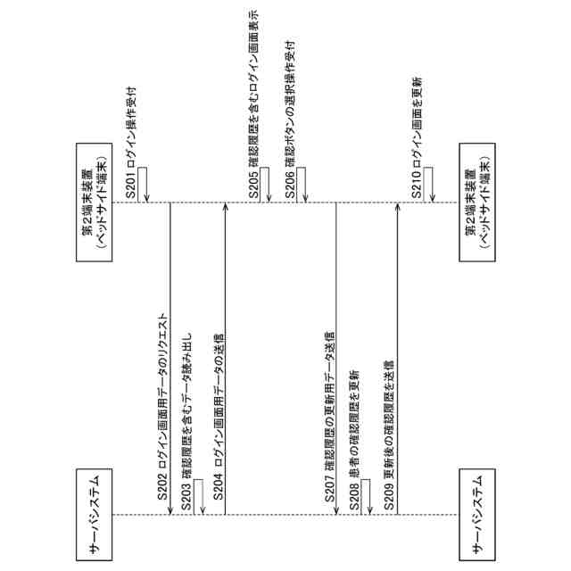 前記第2画面において、前記看護師が巡視を行ったことを表す確認操作を受け付けた場合に、前記第2端末装置に対応する前記患者の確認履歴を他の患者の確認履歴と独立して更新する第2更新処理を行う、