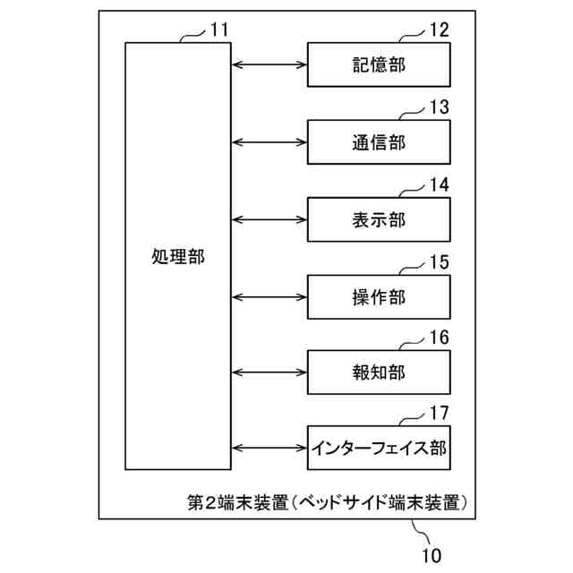 前記患者のベッドの近傍に配置される第2端末装置と、