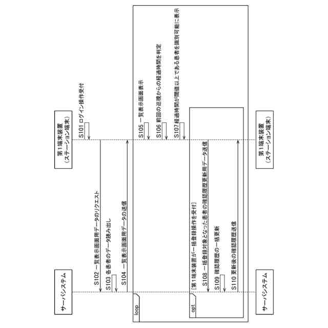 前記複数の患者のそれぞれについて、前記確認履歴の更新タイミングからの経過時間を表す情報を取得し、