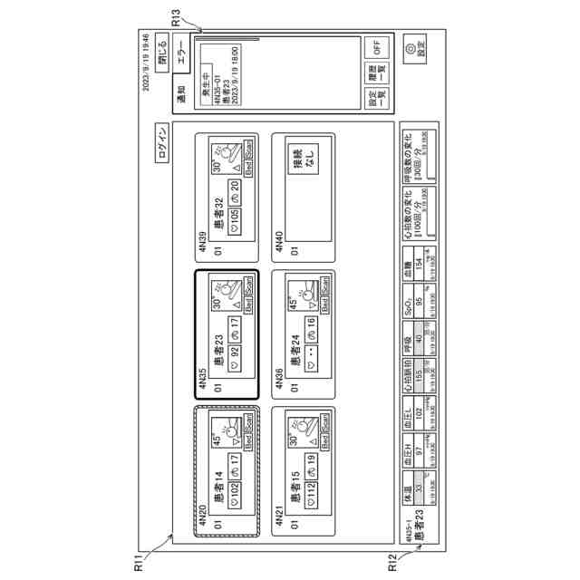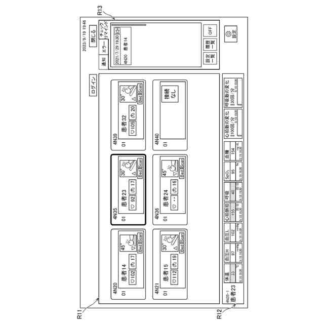 従来、ベッドの近傍に設けられる端末を含むシステムにおいて、患者の情報を提示する手法が開示されている。