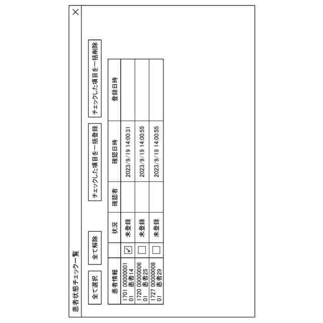 前記第1画面において、前記看護師が前記複数の患者のうちの二人以上の患者の巡視を行ったことを表す確認操作を受け付けた場合に、前記二人以上の患者の確認履歴を一括更新する第1更新処理を行い、
