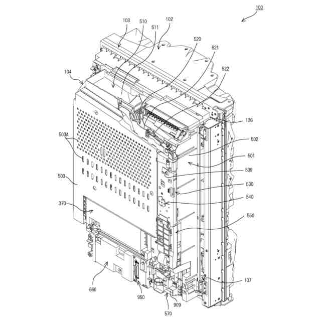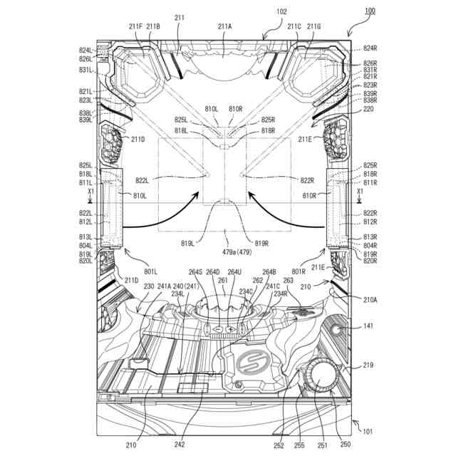 まず、図1から図9を主に参照して、パチンコ機100の構造部分の構成について説明する。図1~図4は、パチンコ機100の各種状態を示す斜視図であり、図1はパチンコ機100の閉鎖状態を示し、図2は外枠101に対して前ブロック102及び中間ブロック103が一体的に開放されている状態を示し、図3は中間ブロック103に対して前ブロック102が開放されている状態を示し、図4は中間ブロック103に対して後ブロック104が開放されている状態を示している。また、図5は、パチンコ機100の正面図であり、図6は、図5の状態からパチンコ機100の前ブロック102を取り外した状態を示している。なお、各図において各種の配線は省略されており、また、図3及び図6において遊技盤400の構成の一部は省略されている。