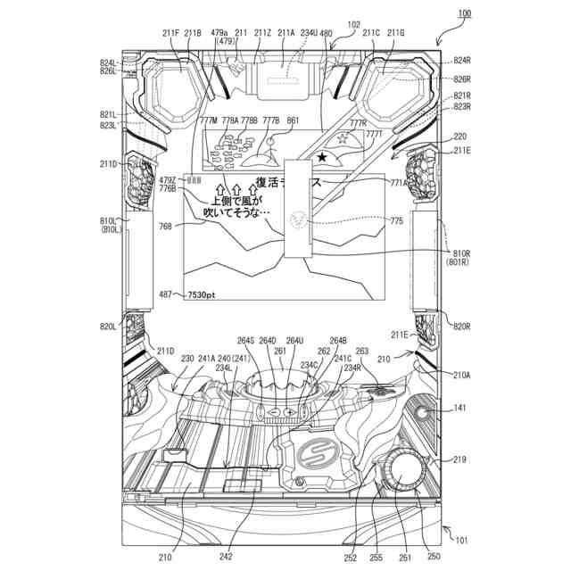 本発明に係る遊技機の実施形態について、図1から図395を参照して、遊技機の一種である弾球遊技機の一例としてのパチンコ機の構成、作用効果、変形例、他の遊技機等について説明する。実施形態においては、 図1から図173までの一群の説明を前半部分として説明し、図174から図395までの後半部分の説明は前半部分とは別の一群の説明であって用語の定義が異なり、符号の説明が異なる場合を含む。まず、図1から図173を参照して、前半部分としてのパチンコ機の実施形態について説明する。