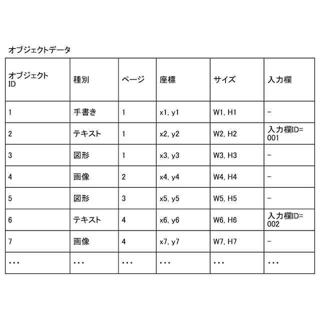 オブジェクトデータ記憶部に記憶されるオブジェクトデータを説明する図である。