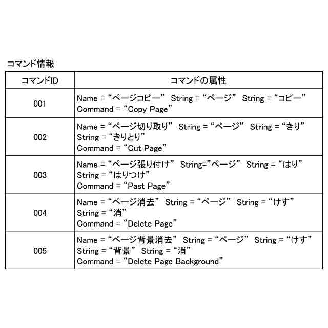 コマンド情報記憶部に記憶されるコマンド情報を説明する図である。