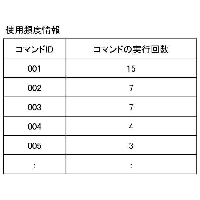 使用頻度情報記憶部に記憶される使用頻度情報を説明する図である。