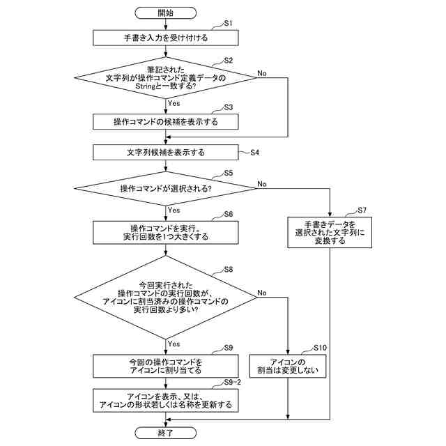 しかしながら、従来の技術では、ユーザーが手書き入力する内容によっては、操作コマンドを実行するまでのユーザーの労力が異なる。例えば、操作コマンドを実行するために手書きされる文字の文字数や画数が多い場合には、手書き入力に労力が掛かってしまう。また、手書き入力から変換された文字列に対応付けられている操作コマンドの数が多い場合には、ユーザーが所望の操作コマンドを選択するのに労力が掛かってしまう。