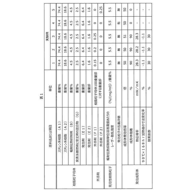 ポリスチレンを基材樹脂とした発泡成形体は、軽量性と断熱性に優れることから、住宅用等の断熱材として広く用いられている。当該発泡成形体に断熱性を付与する一方策として、発泡成形体にグラファイト等の輻射伝熱抑制剤を含有させることが行われている(例えば、特許文献1~3)。
