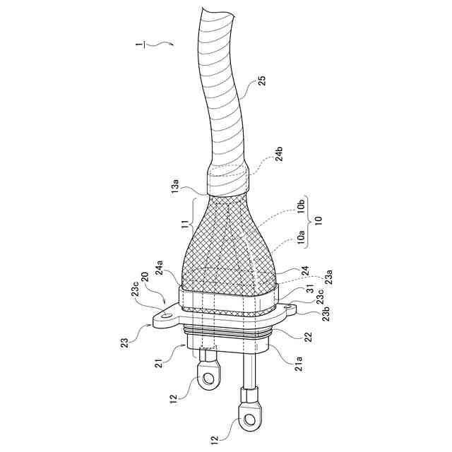 前記編組の一方の端部である第1端部は、前記シールドシェルの本体筒部に接続され、