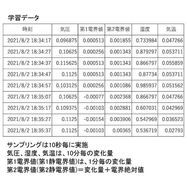 (2)上述した本発明の落雷予測システムにおいて、前記落雷確率予測部は、前記静電界値と前記環境情報との所定期間における変化量を学習データとして生成した予測アルゴリズムに基づいて、前記落雷確率を予測すること、を特徴とするとよい。
