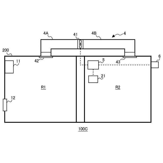 図1は、実施の形態1に係る空調システム100の概略構成図である。実施の形態1の空調システム100は、住宅などの建物200に設置される。図1は、建物200の断面模式図と、建物200に設置された空調システム100の各構成とを示している。図1を用いて、本実施の形態の空調システム100の構成及び配置について説明する。
