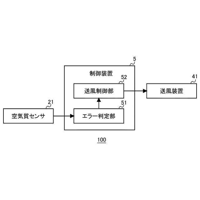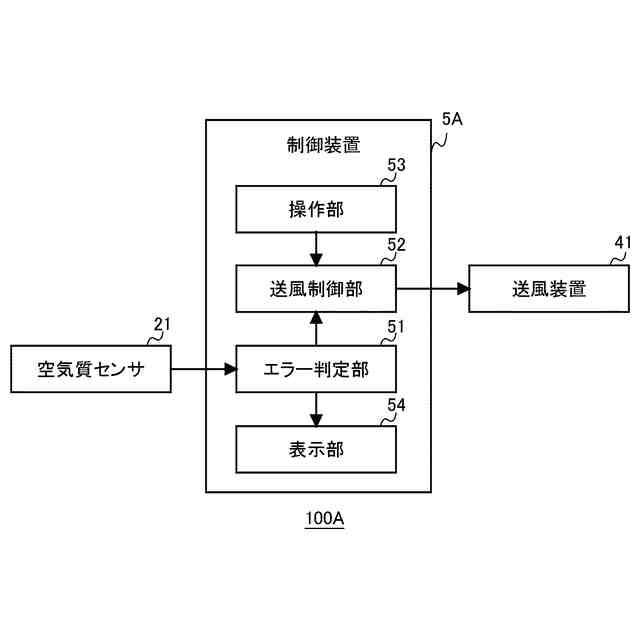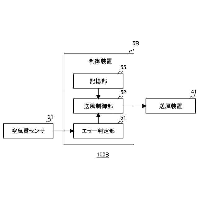 前記空気質センサにエラーが発生したと判定される場合、前記記憶部に記憶される前記過去の空気質情報及び前記過去の屋外情報と、現在の屋外情報と、に基づき現在の前記第2空間の空気質情報を推定し、