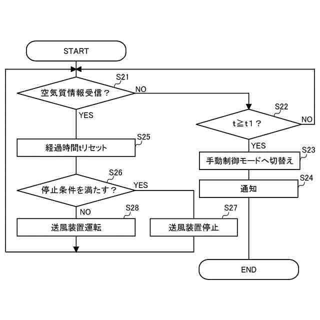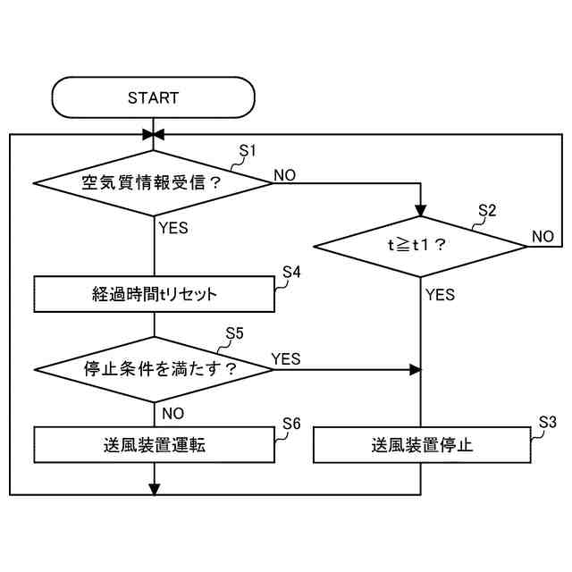 前記過去の空気質情報の保存時間が、予め設定された判定時間以上である場合、前記送風装置を停止し、