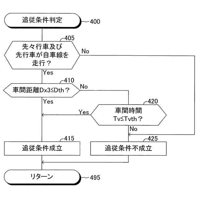 図1に示したECUのCPUが実行する追従条件判定サブルーチンのフローチャートである。