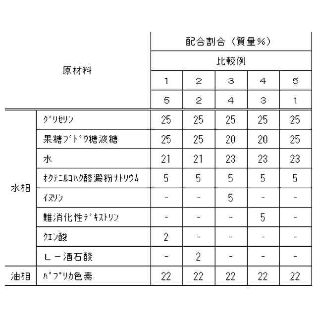 油溶性色素乳化製剤の乳化安定性を向上させる方法に関しては、例えば、a)1種又はそれ以上の脂溶性有効成分、b)食品用途に好適な蛋白質の群から選択される1種またはそれ以上の蛋白質、及びc)1種又はそれ以上の多糖類を含み、蛋白質対多糖類の重量比が、bが5以上であるという条件下で、1:bのように選択される、組成物(特許文献1)、合成乳化剤、蛋白溶解塩、pH調整剤、増粘多糖類を実質的に含まず、乳化性澱粉及び小麦蛋白分解物を含有する水中油型乳化油脂組成物(特許文献2)等が知られている。