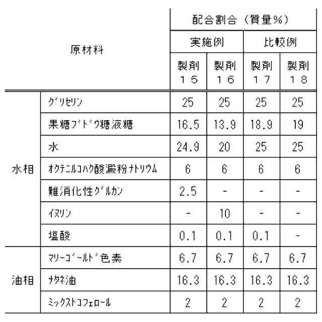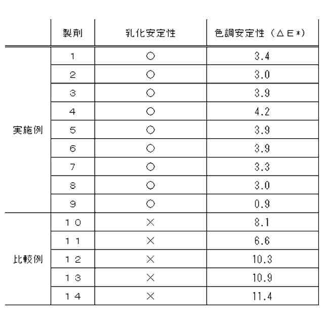 これら製剤の中でも、アルケニルコハク酸エステル化澱粉を用いた油溶性色素の乳化製剤は、保存中の乳化安定性及び色調安定性が低く(即ち、保存中に乳化粒子が粗大化や油分の分離が起こり、顕著な色調変化が生じる)、長期間の保存が困難である。このため、アルケニルコハク酸エステル化澱粉を用いた油溶性色素乳化製剤は、長期保存を可能にするために、保存中の高い乳化安定性及び色調安定性が求められていた。