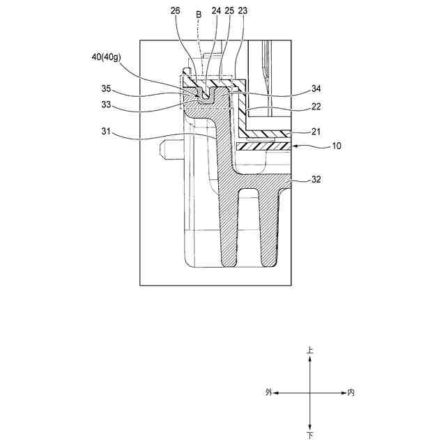 当該カバーの縁部に沿って延び且つ前記凹条部に嵌め込まれる凸条部と、前記厚さ方向において前記凸条部よりも前記内側にある内側縁部と、前記厚さ方向において前記凸条部よりも前記外側にある外側縁部と、を有し、