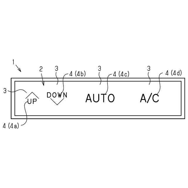 パネル2の表面には、複数の操作機能ごとに操作部3が割り振られている。操作機能は、例えば、温度切替機能、オートオンオフ機能、A/Cオンオフ機能などが挙げられる。操作部3は、例えば、温度上昇操作用、温度下降操作用、オートオンオフ切替用、A/Cオンオフ切替用などがある。
