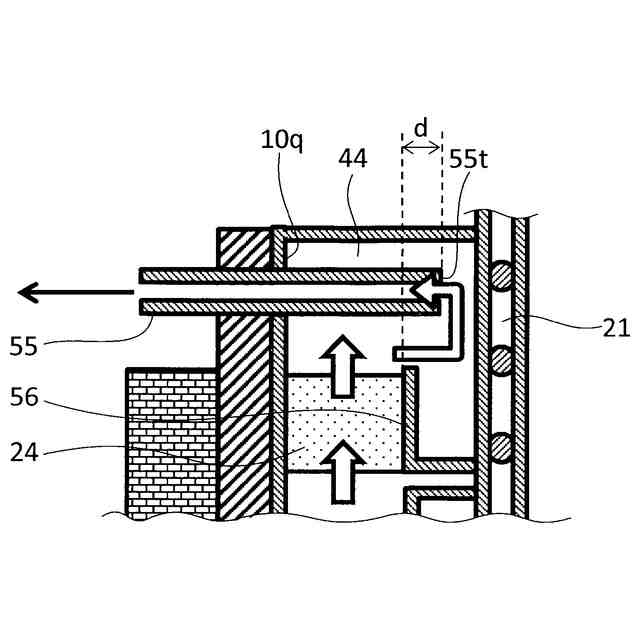 前記排出流路に向けて開口する開口端部を含み、前記容器に取り付けられた出口配管と、