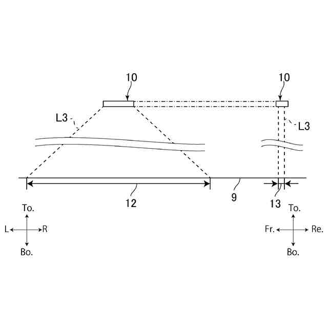 図5は、照明装置10の前後方向視及び左右方向視における照明範囲12、13を説明する図である。