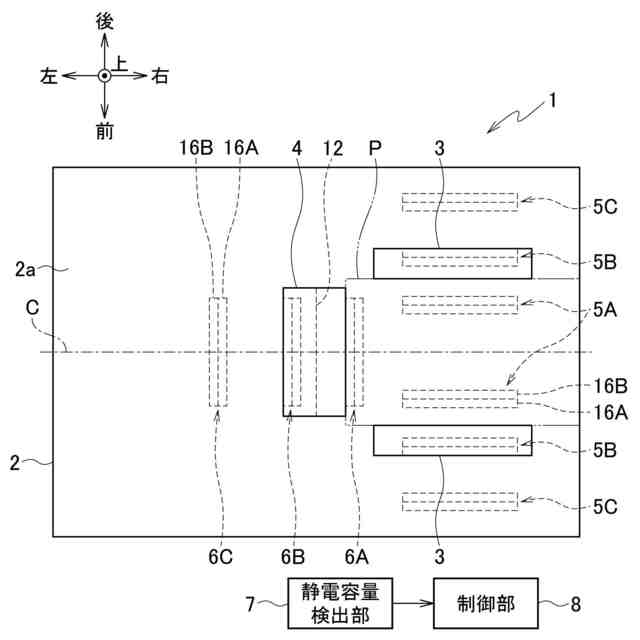 前記複数の検知電極のそれぞれの静電容量を検出する静電容量検出部と、