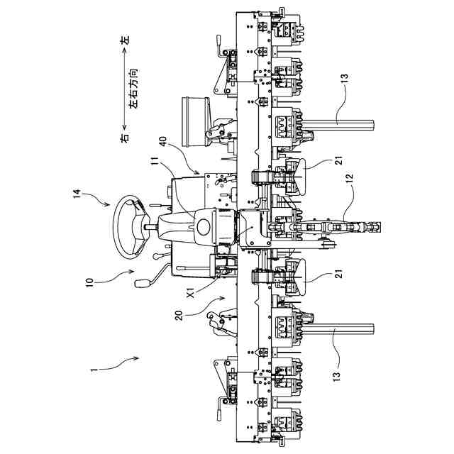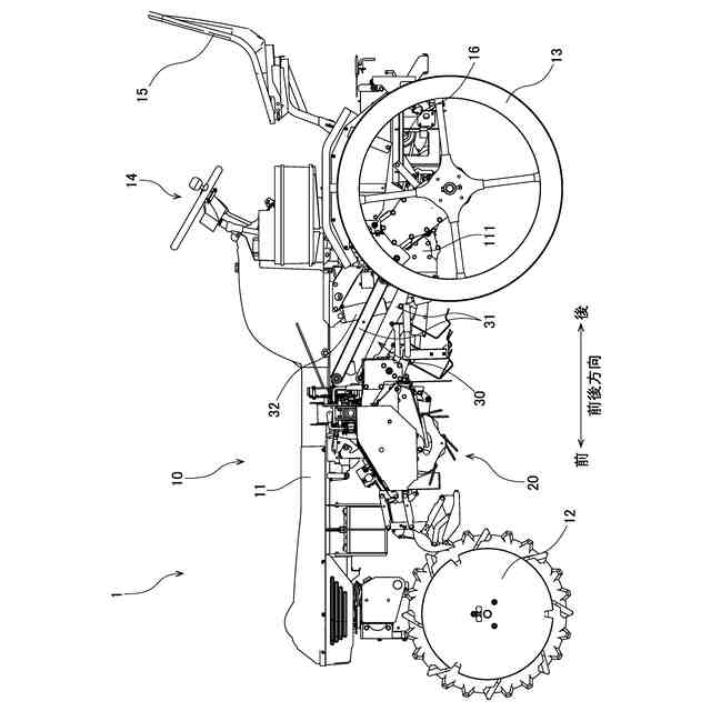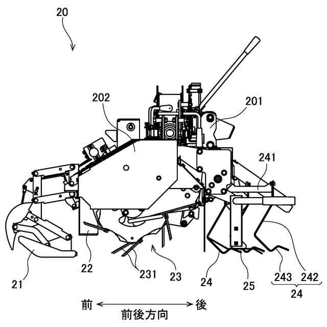 本発明は、このような事情に鑑みなされたものであり、非除草時(除草装置退避時)に除草装置の左右の端部が地面や田面に接触することを抑制する技術を提供することを、目的とする。