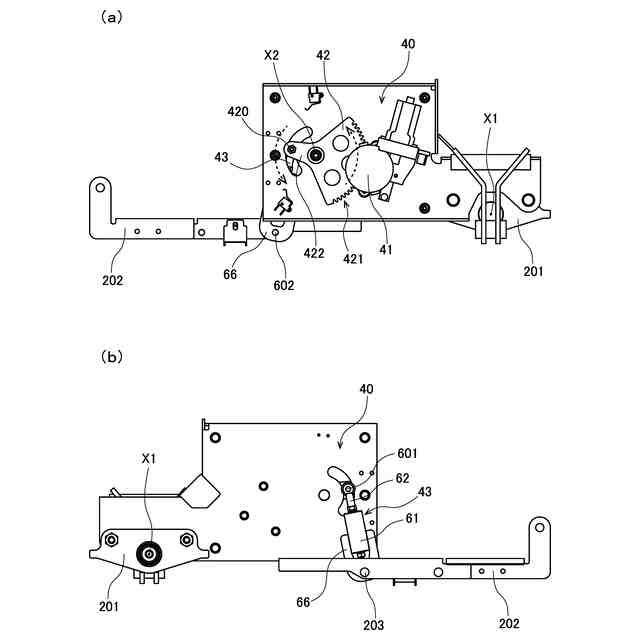 前記回動軸から左右方向に間隔を開けて配置される出力部