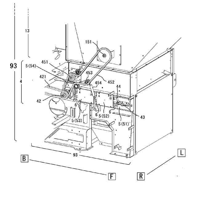 図3は実施例の駆動伝達側面93の斜視図であり、搬送部4を含む周辺の駆動機構が図示されている。