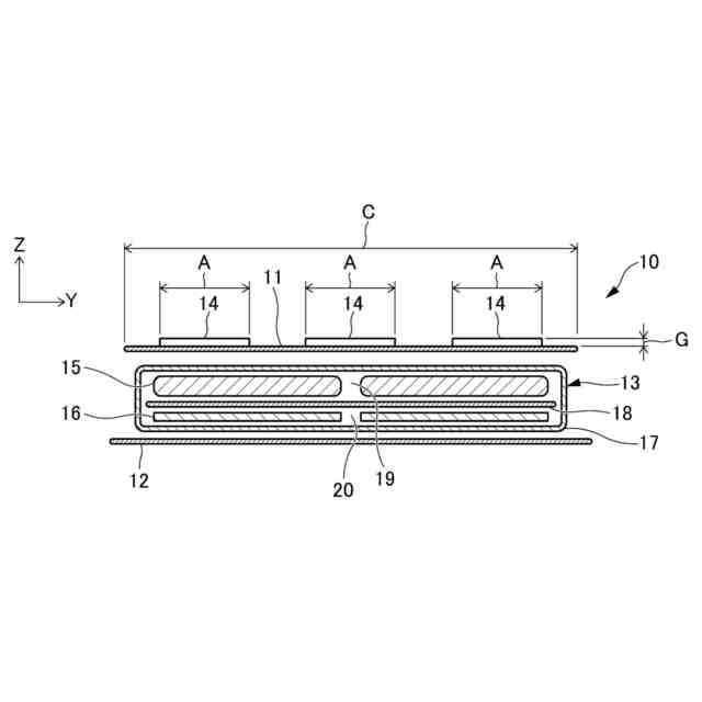 複数の前記列は、前記長手方向に互いに離間して配置され、