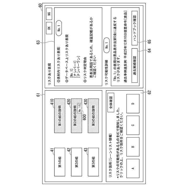 このような広告の考査(審査)を行う技術が特許文献1に開示されている。特許文献1にはコンテンツ作成者の負担の増大を抑制するための技術であり、所定の基準によるコンテンツの事前審査の結果に関する情報を提示する技術が開示されている。また広告の事前審査の可否と合わせて、広告の事前審査の内容に応じて複数の不可理由から選択される不可理由を提示することが特許文献1の段落0021等に開示されている。