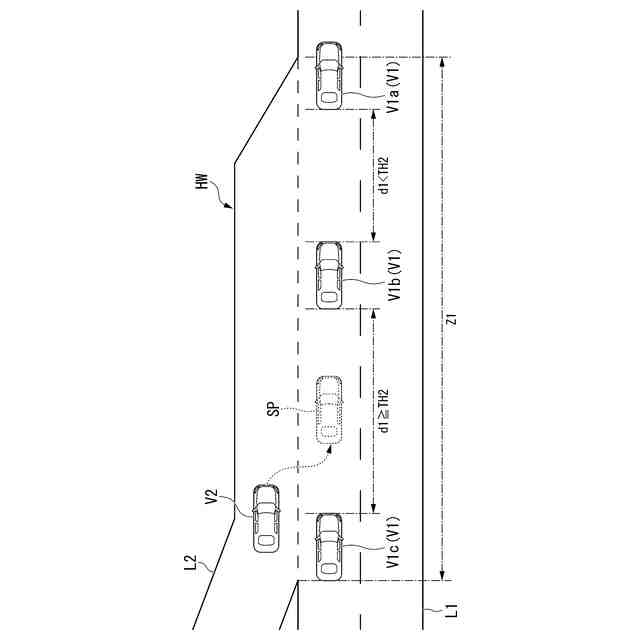 第1の実施形態に係る合流車両の合流スペースの一例を示す第2の図である。