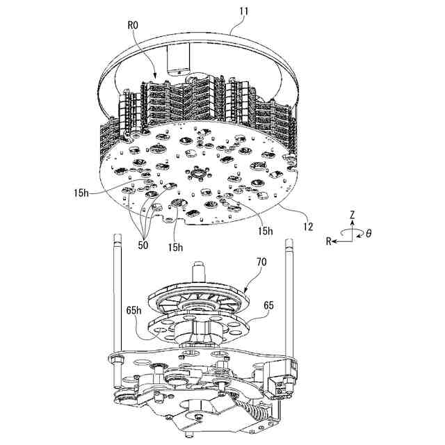前記カム部材は、前記ユニットベースの前記径方向の内側に配置され、