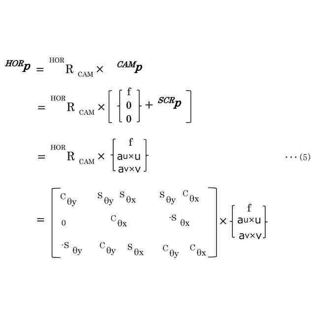 前記第1座標系における前記特徴点の位置を前記水平面に平行な面を基準とする第2座標系における位置に変換し、
